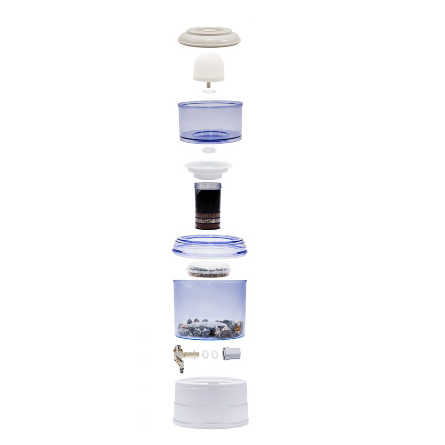 - De keramisch filter met een uiterst kleine doorlaatopening van 0,2 micron die bacteriën, protozoa en kalk uit het water filtert. De doorsnede van de meeste bacteriën bedraagt tussen de 0,25 en 1,0 micron