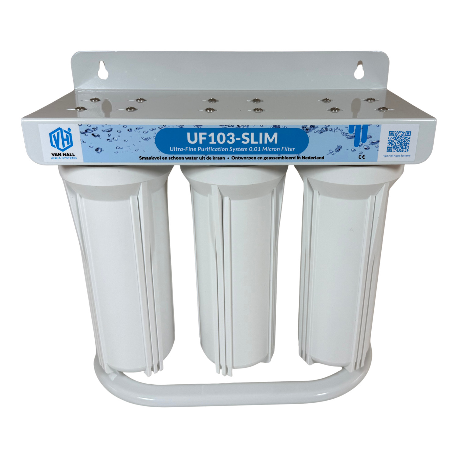Met de UF103-Slim waterfilter op standaard haal je schoon en fris drinkwater direct uit je keukenkraan. Hij filtert ultrafijn tot 0,01 micron, werkt zonder stroom en je sluit hem in ongeveer 10 minuten aan met de materialen die al zijn meegeleverd.